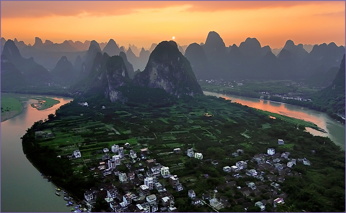 계림 흥평소재 라오자이 산에 올라 바라본 황포도영의 꿈같은 일몰경입니다