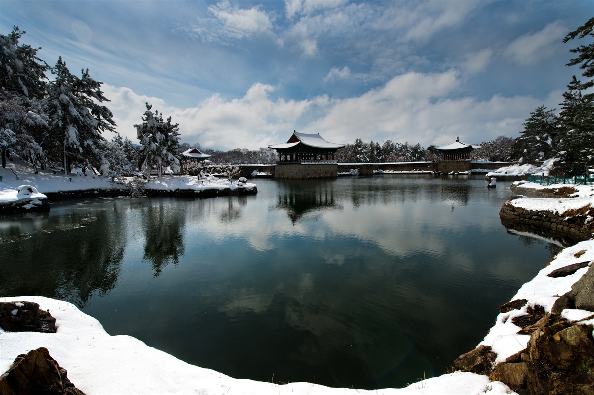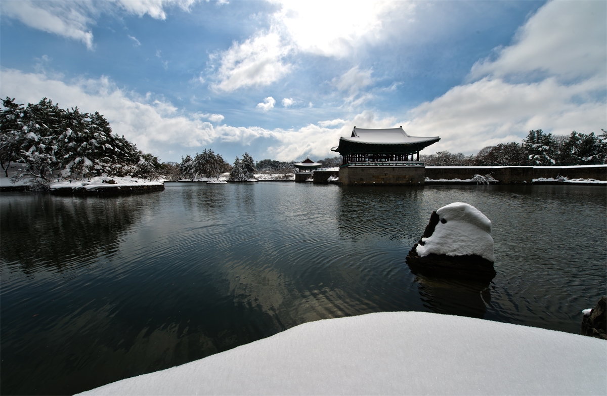 눈내린 안압지설경