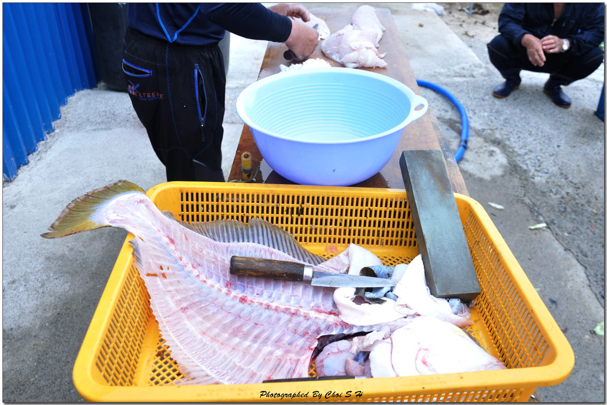 그물넣고 첫작업날이라 하네요 멸치도 많이 잡았지만 대물 광어를 잡고기와 잡아서