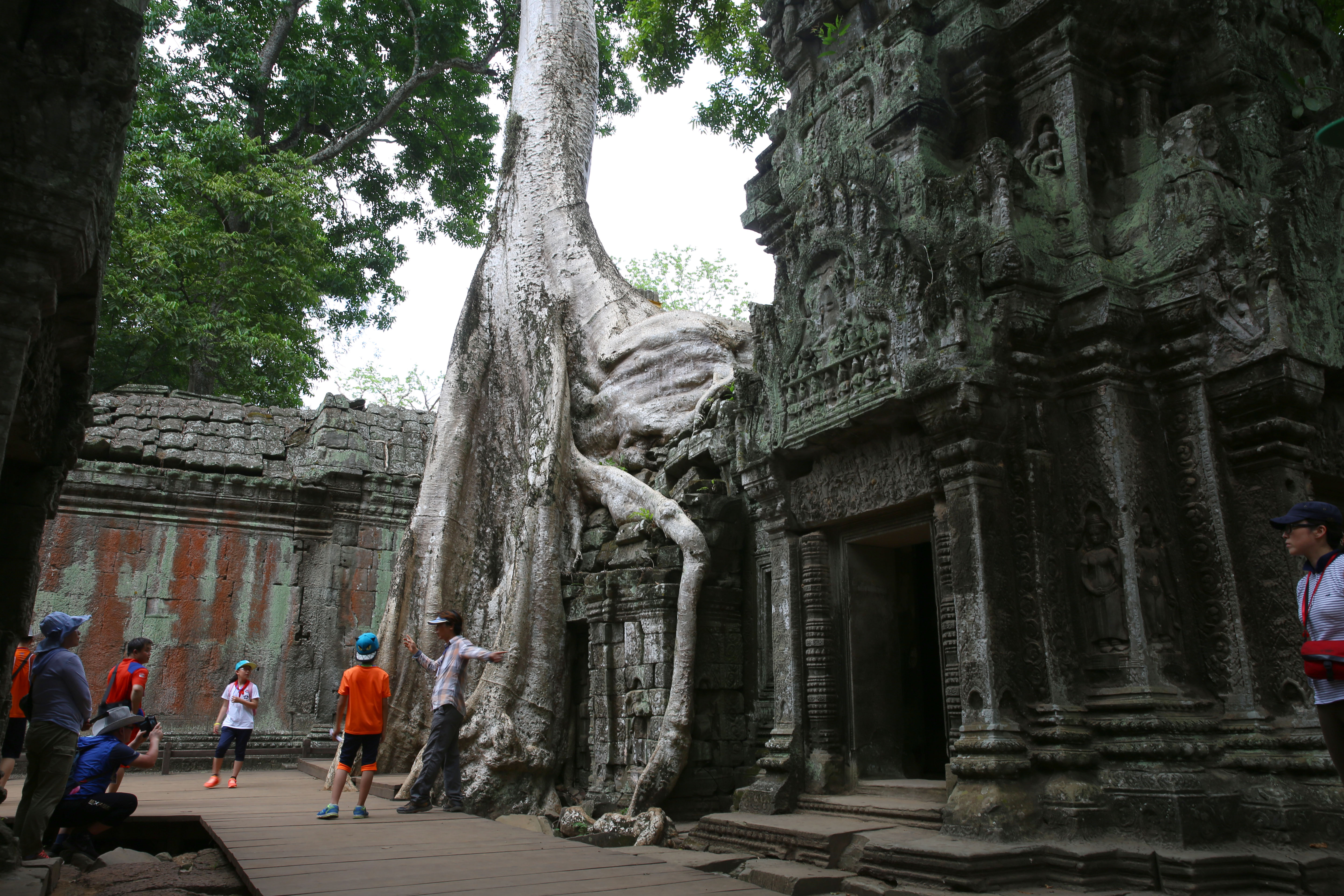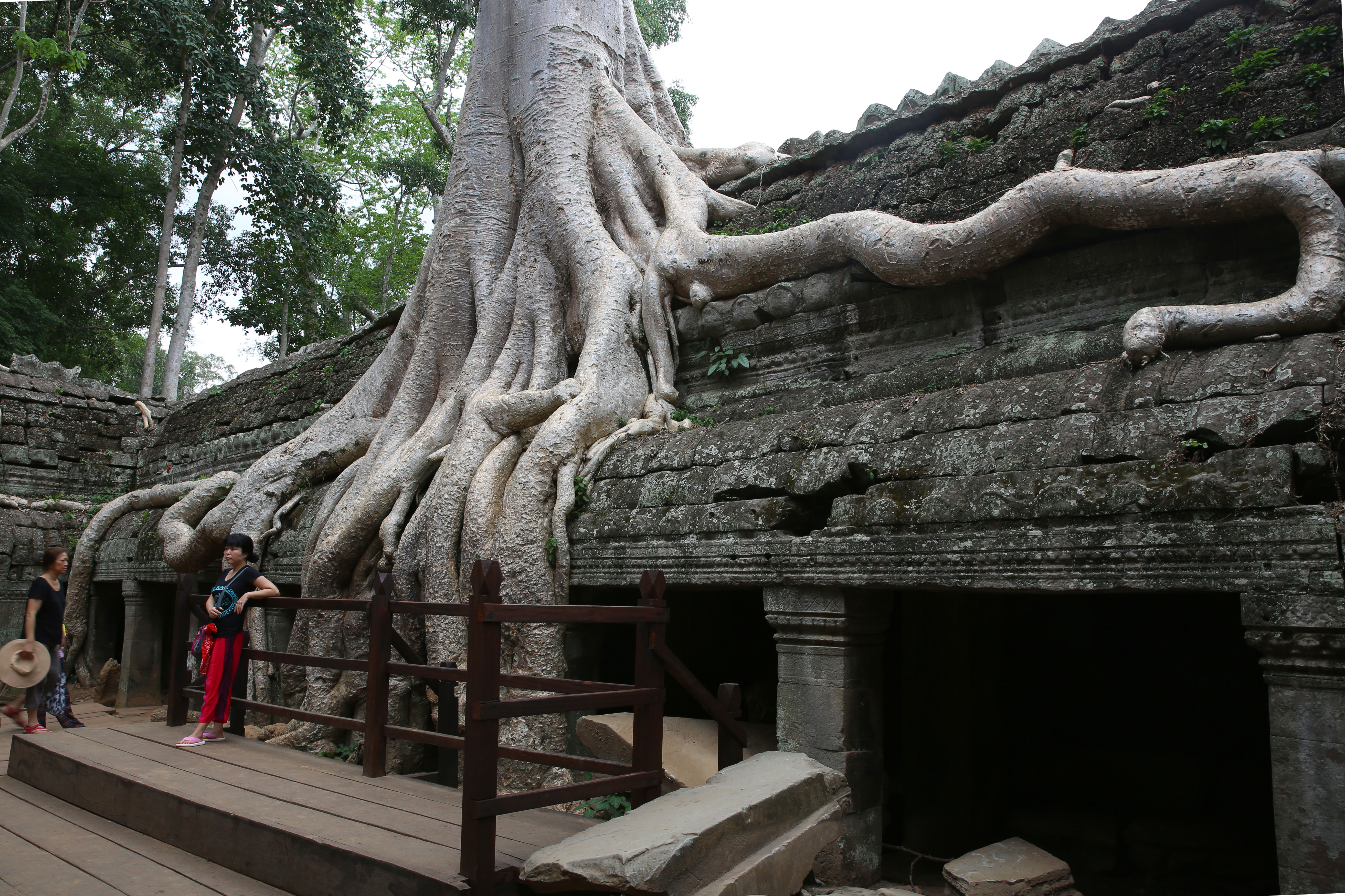 희귀나무 뿌리가 유적을 삼키고 있습니다