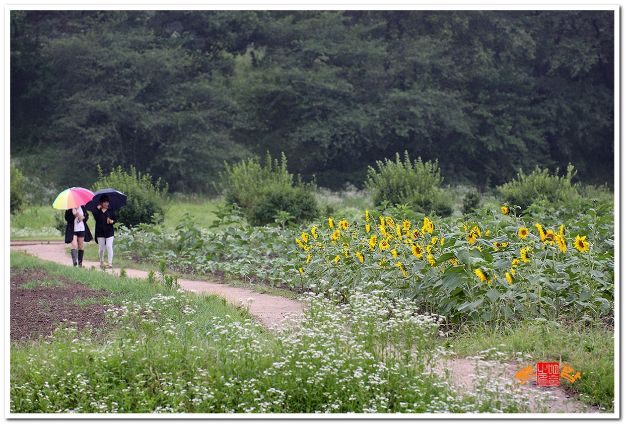 비가 오는 날, 해바라기의 열굴이 어디로 ......