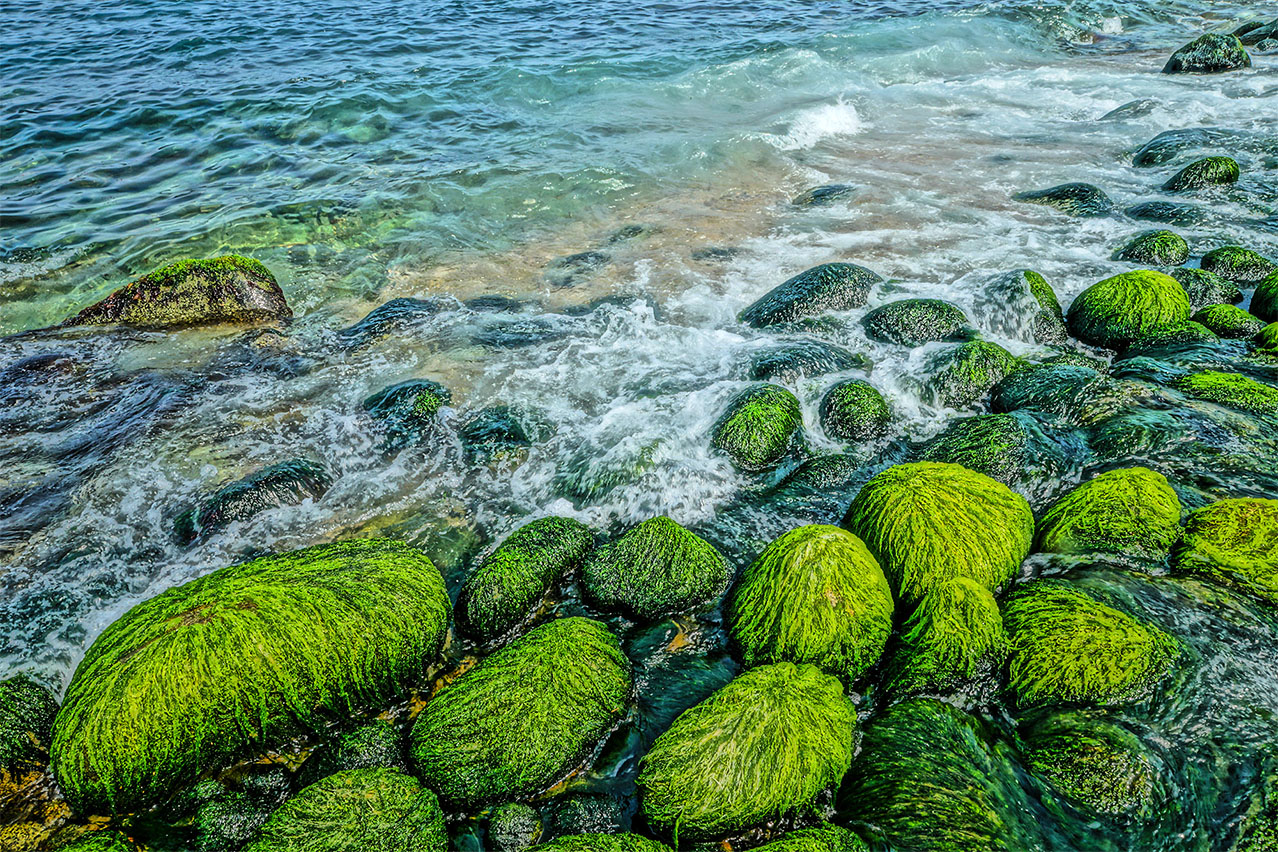 *해변 안쪽의 모모수산에서 해수 유입관 교체 작업을 하면서 장비가 몽돌을 훼손 시키고 있었읍니다.