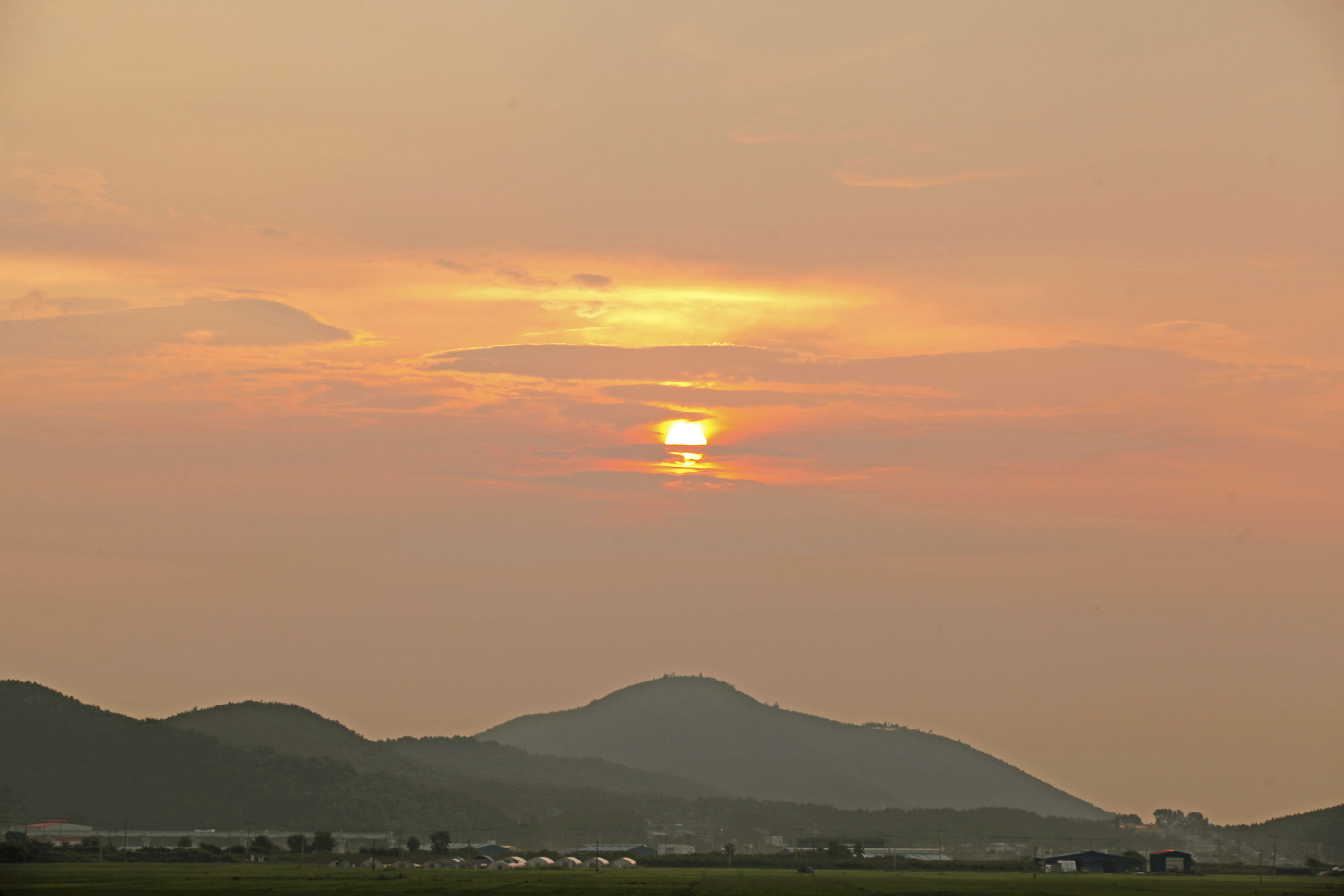 여름의 장마철 일출 구름이 해를가리네요