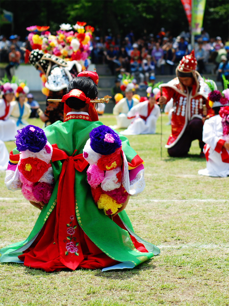 더운 날씨.. 탈을 쓰고 있는 모습이 안쓰러워보였는지 애들이 부채질을 해주고 있는 모습이 인상적이었습니다.
