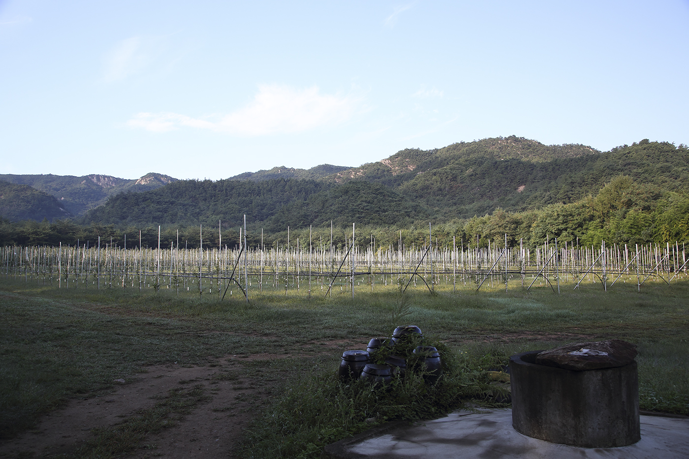 오랫동안 빈밭이던 곳에 지줏대 숫자만큼 사과나무가 심어졌네요.