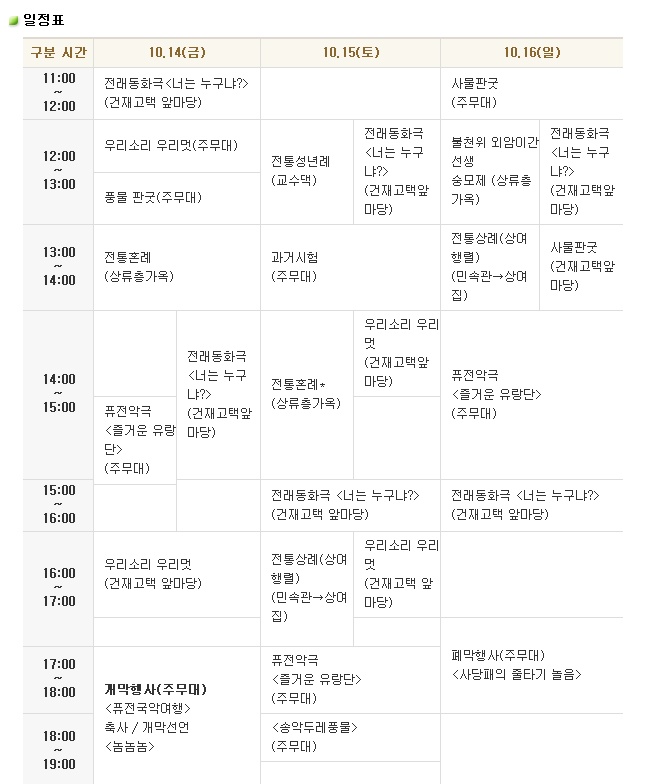금년 10월14일(금)~16일일)까지 입니다.