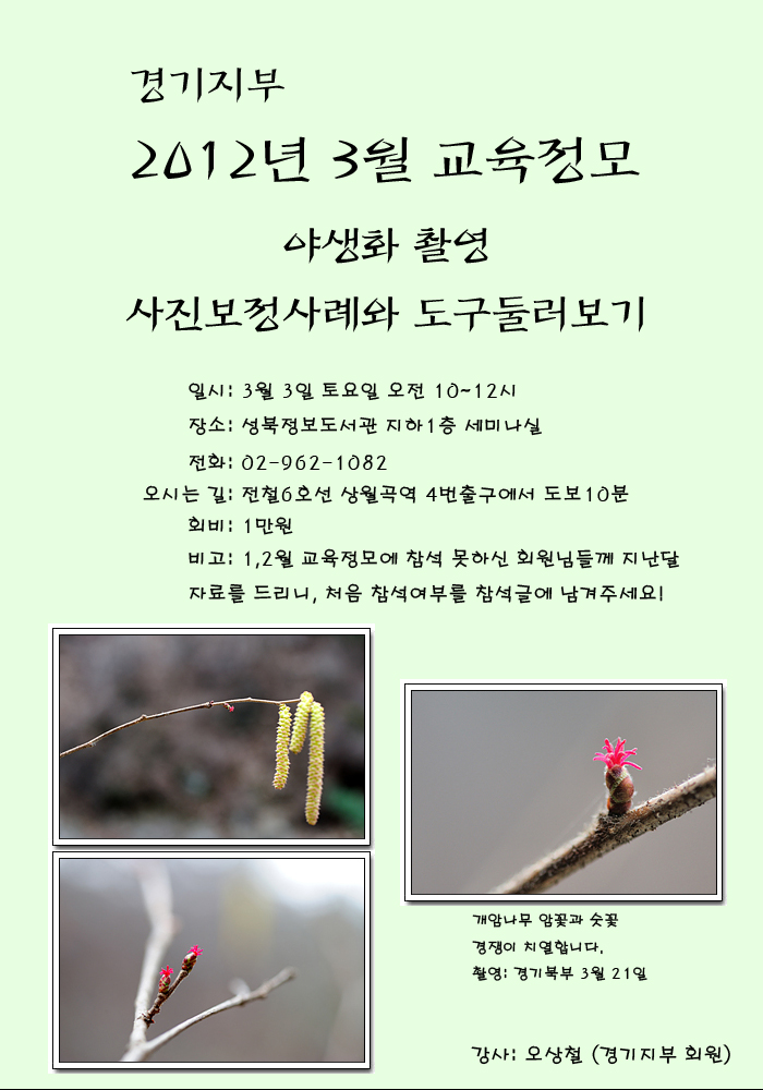*  강의가 끝난 뒤 경기도 광주 일대에서 야생화 촬영 실습이 있을 예정이오니