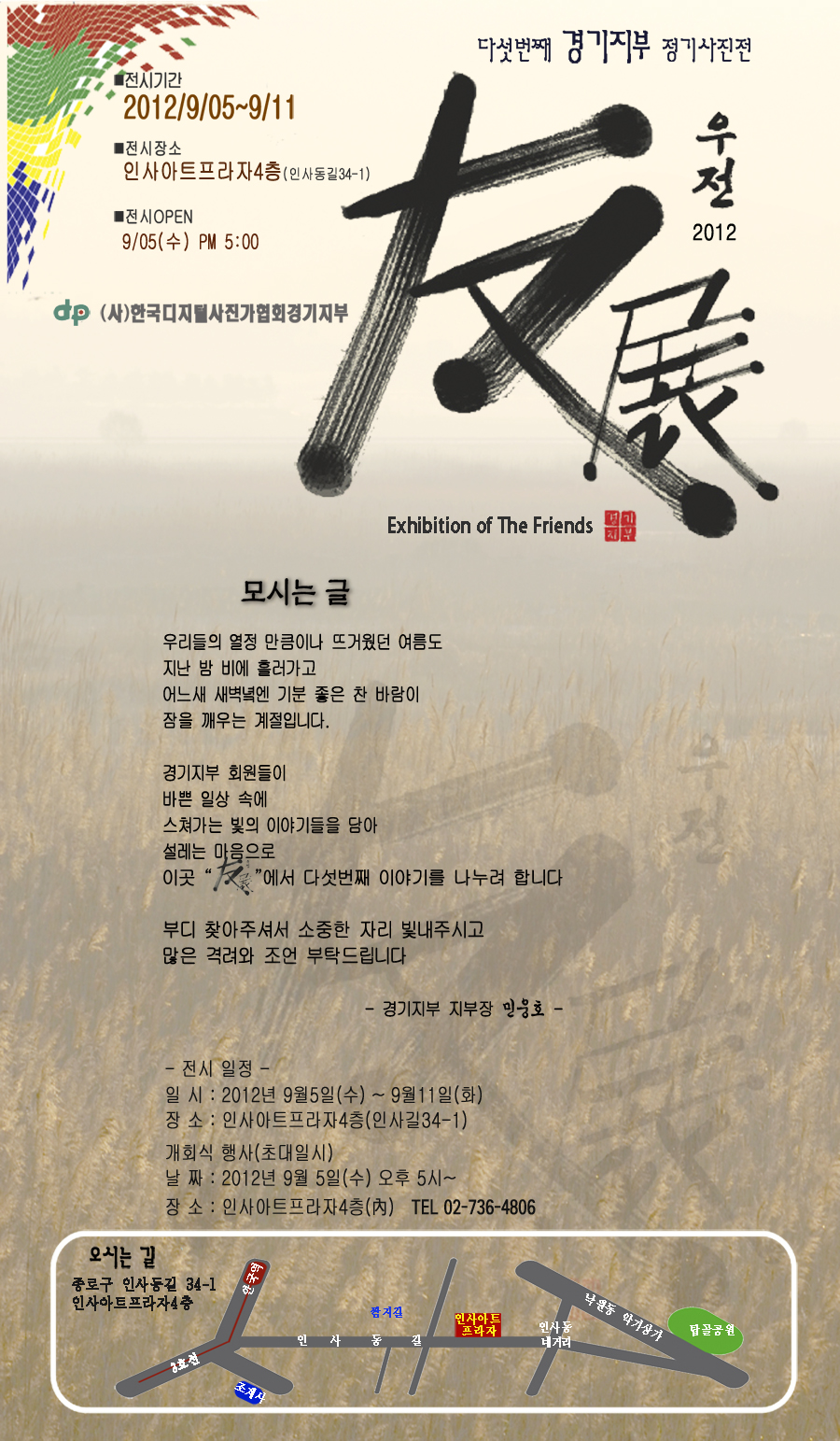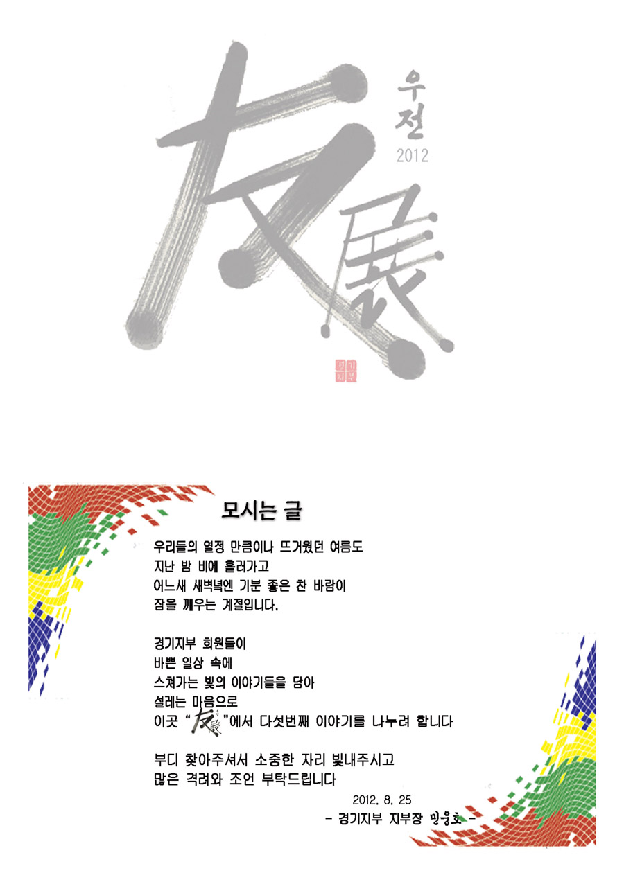 | 482 | 제5회 경기지부 회원전에 "초대 합니다". (68) | 박재홍 | 12-08-25 | 262 |