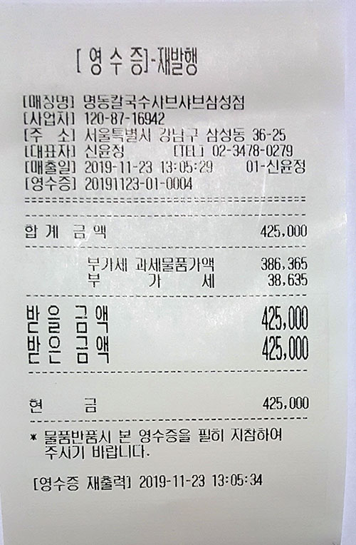 대관료영수증