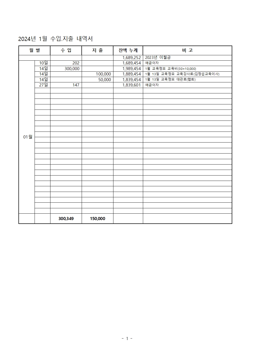 2024년 1월 수입.지출 내역서
