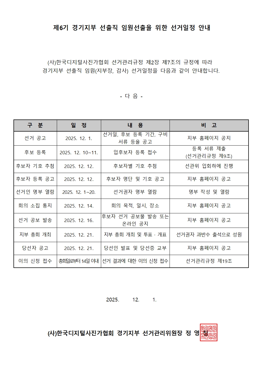 『경기지부』(사)한국디지털사진가협회 경기지부 제6기 선출직 임원선출을 위한 선거일정 안내