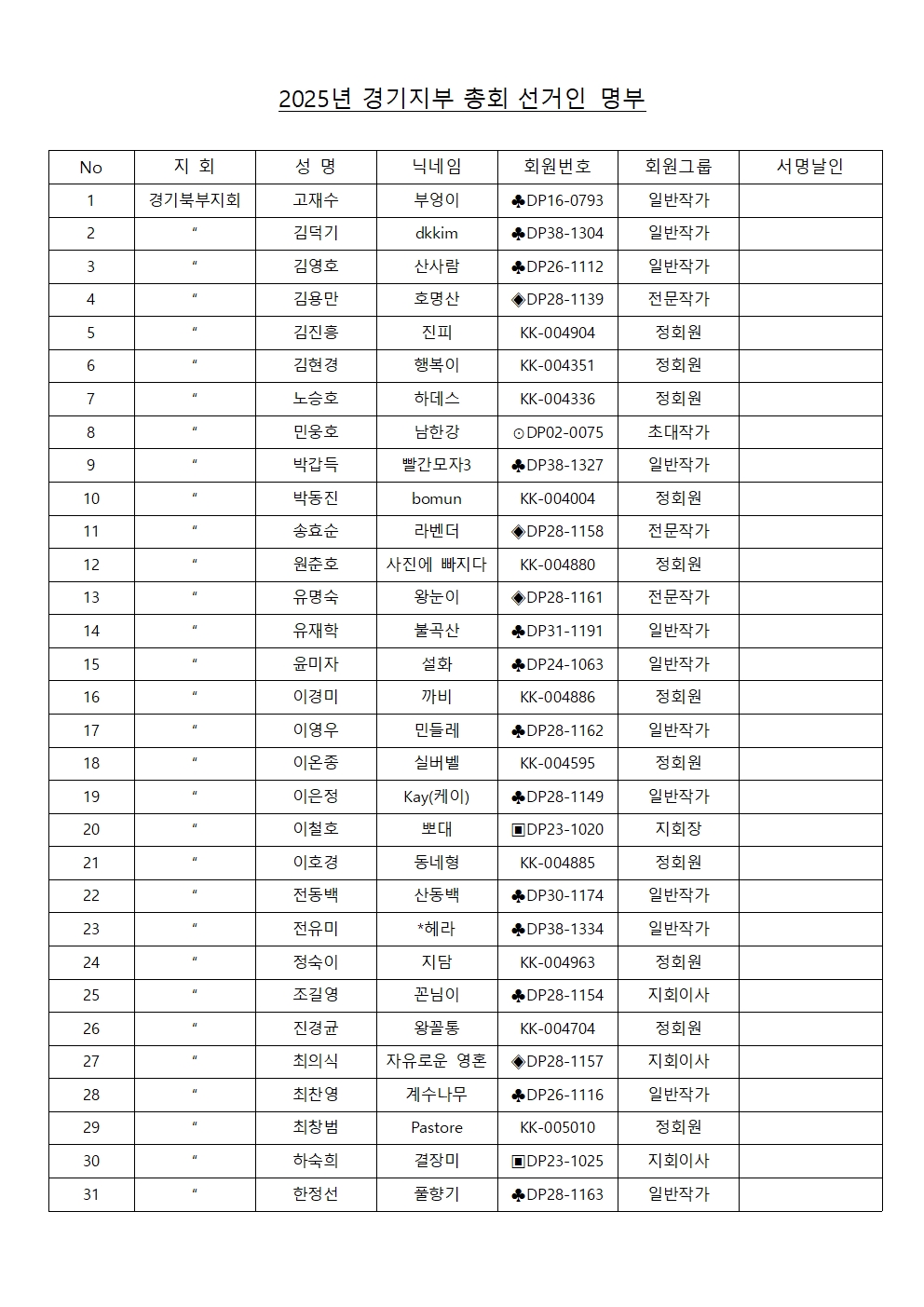 『경기지부』(사)한국디지털사진가협회 경기지부 지부장 및 지부 감사 선거인 명부 열람 공고