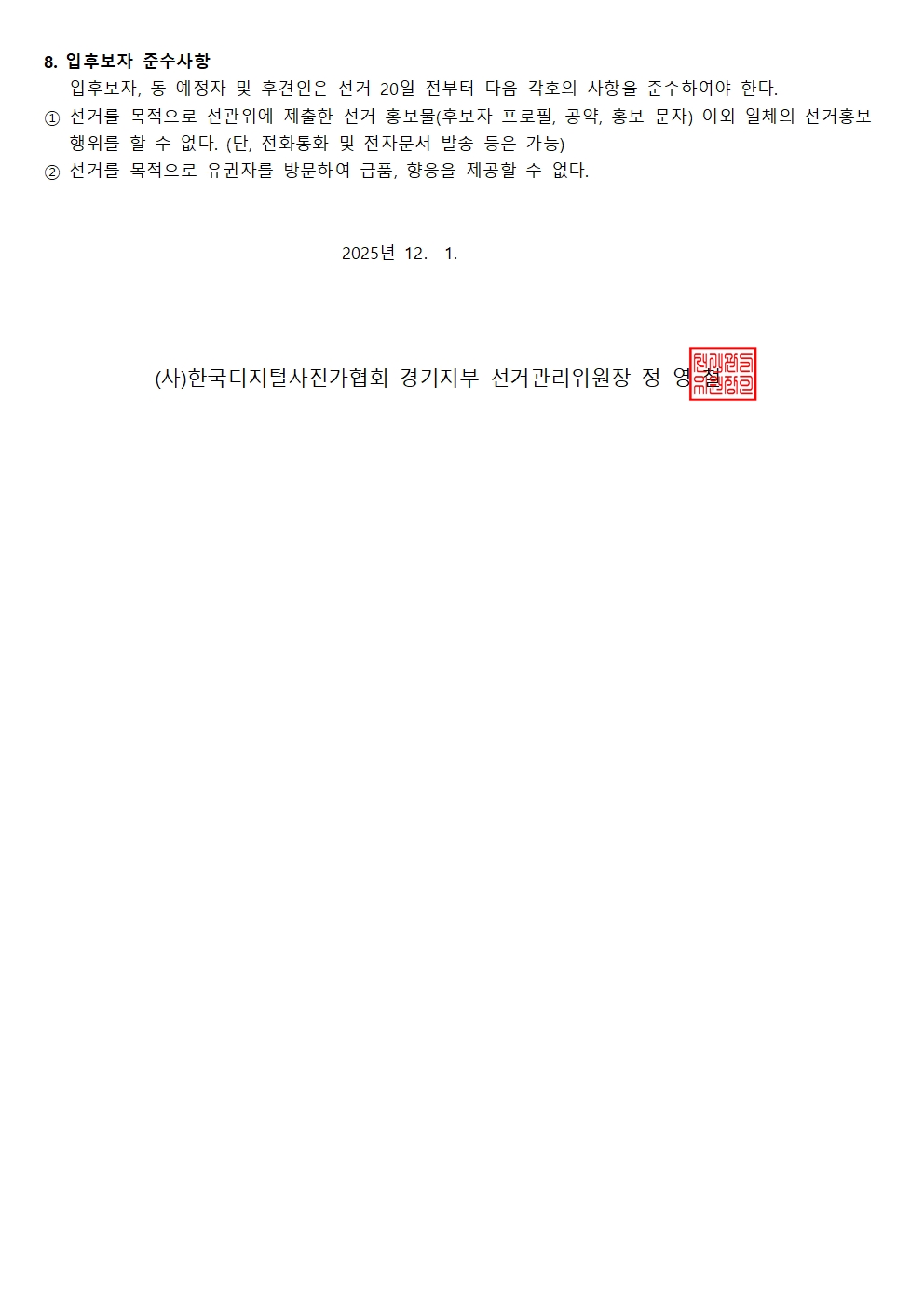 『경기지부』(사)한국디지털사진가협회 경기지부 제6기 선출직 임원선출을 위한 선거일정 안내