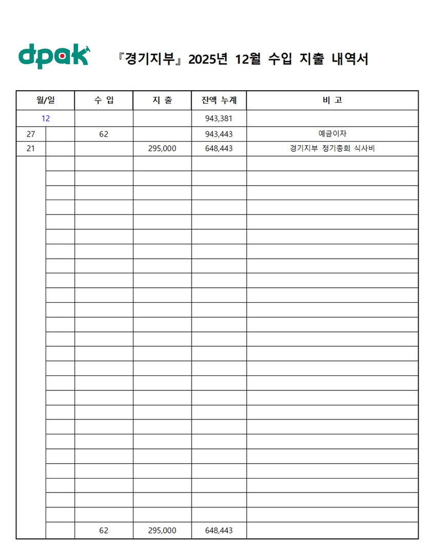 『경기지부』 2025년 12월 수입 지출 내역서