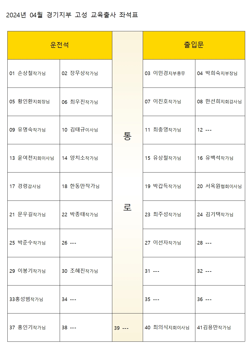 2024년 04월 경기지부 고성 교육출사 좌석표및 탑승지역