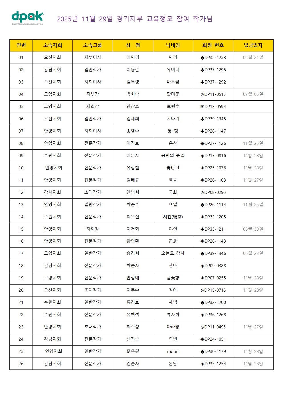 『경기지부』 2025년 08월 30일 경기지부 현장 교육정모 참여 작가님(최종)