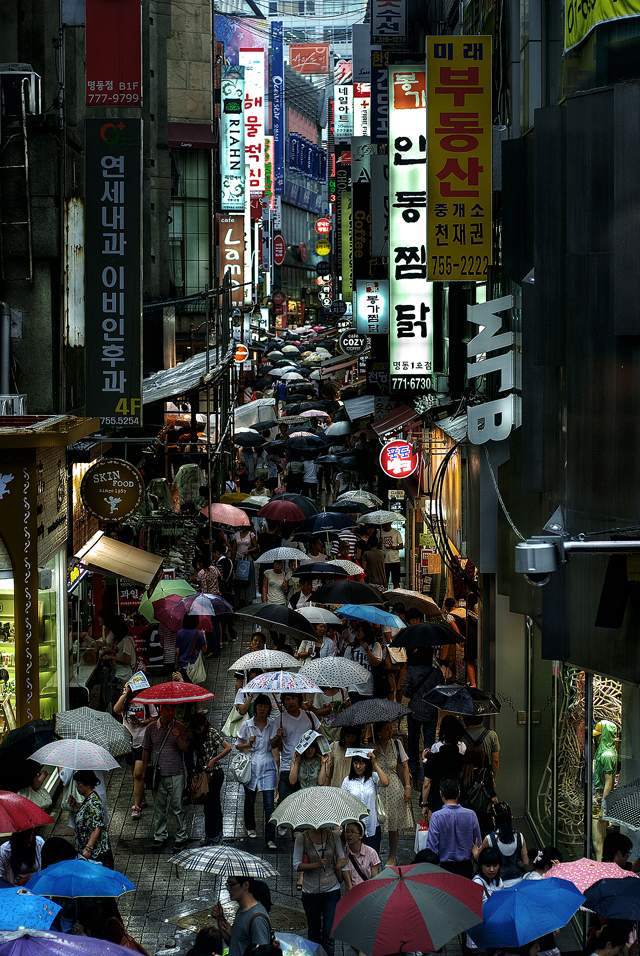 옷만 젖고 카메라도 젖고...ㅠㅠ 배도 고프고 해서 명동의 한 도넛 가게에서 창밖을 보니
