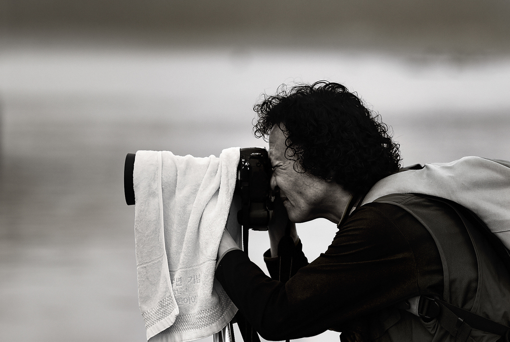평상시 해학적인 웃음과는 다르게 사진 촬영 시 무섭도록 진진해 지는 표정에서