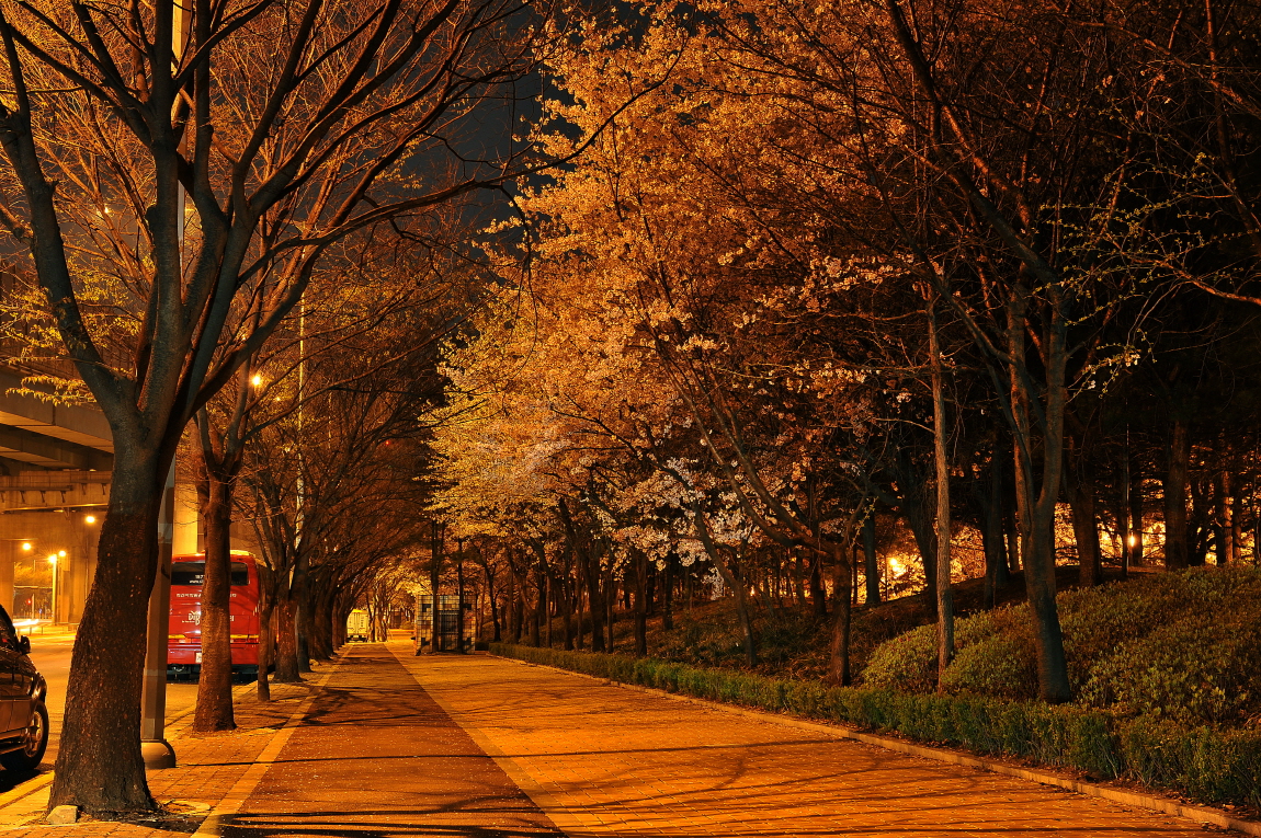 낮에 시간이 부족해 밤늦게 근처 벚꽃을 찾았네요..