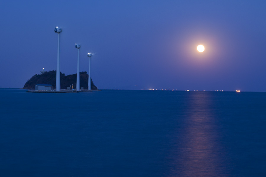 탄도항의 새벽 보름달