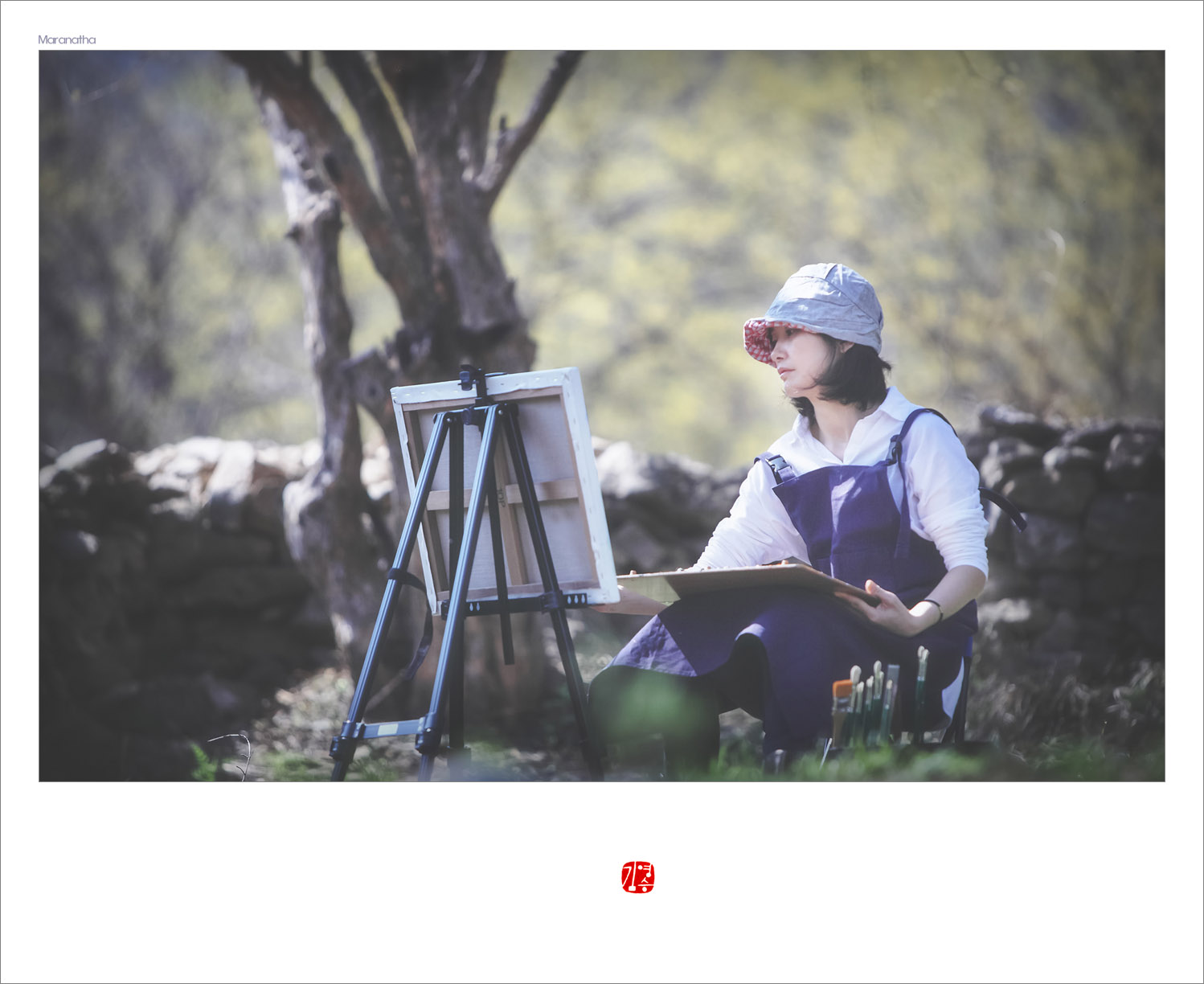 이천 산수유 마을에 나들이 나와 봄의 그림을 그리는 여인의 모습...