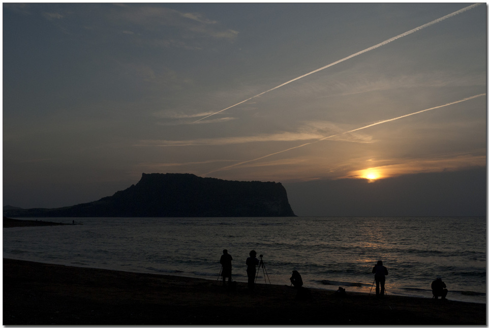 새벽을 가르며 지나간 비행기의흔적이