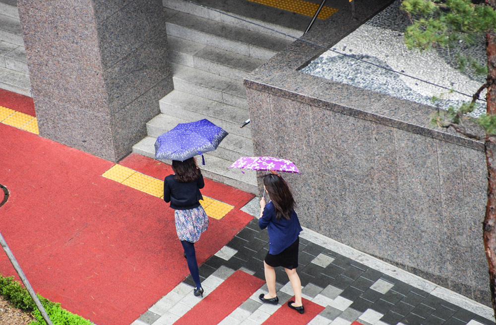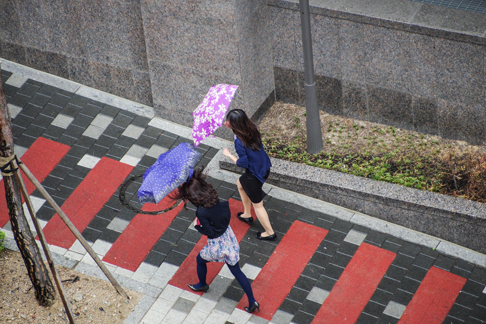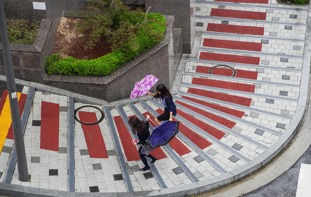 앗!!~~ 여성 두분이 우산을 들고 바람과 사투 중~~~~