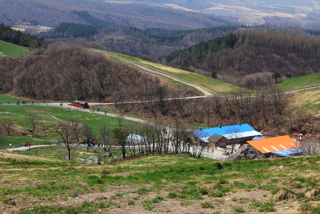 대관령 양떼목장 웬바람이 그리도 센지 모자는 날라가고 ...