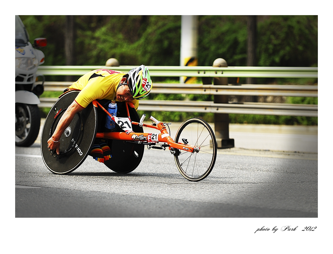 오직 양 손의 힘만으로 그 먼 길을 달려오는 선수들.