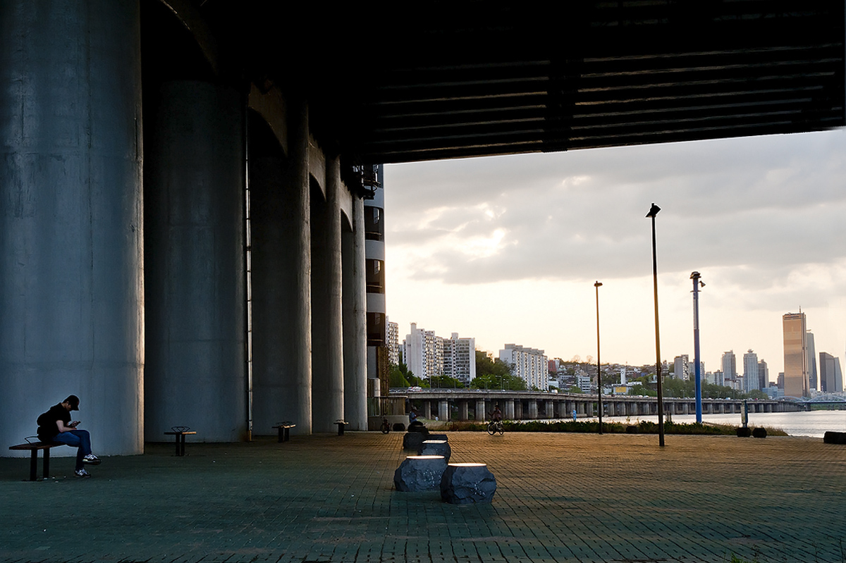 한강의 동작대교 남쪽 교각 아래에서