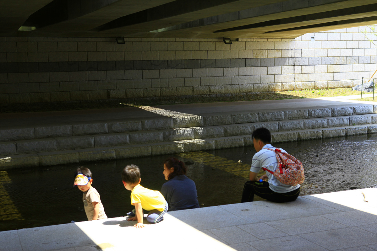 시원한 수원 화홓문 밑으로 내려오는 실개천 다리밑에서 시원한 바람이 불고그늘이 있어 가족나들이하기엔 안성 맞춤이지요.(다리 사이에 빛이 너무 예뻤습니다>)