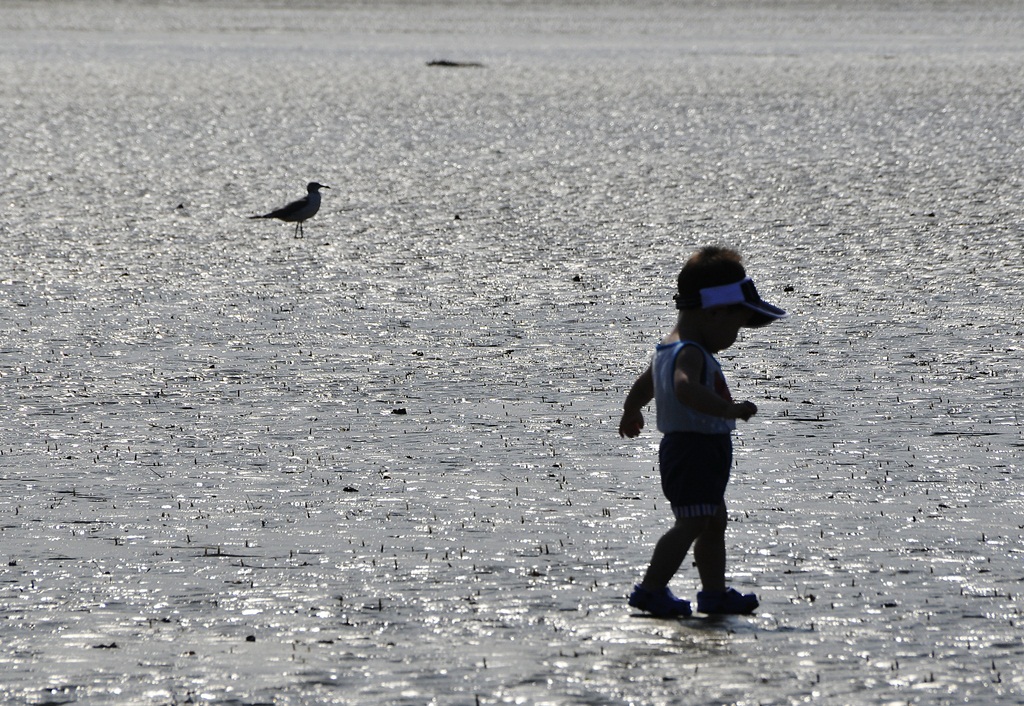새와 함께 걸어가는 아가 의 모습입니다.