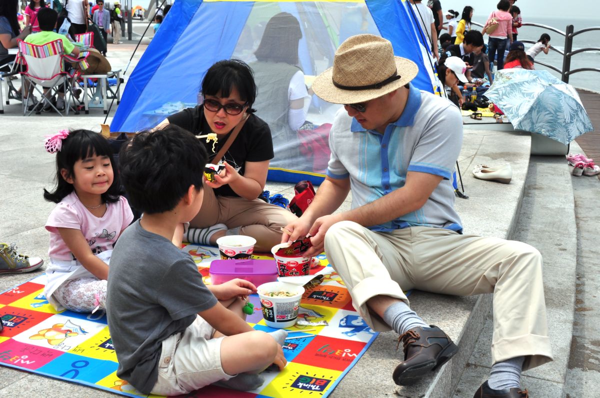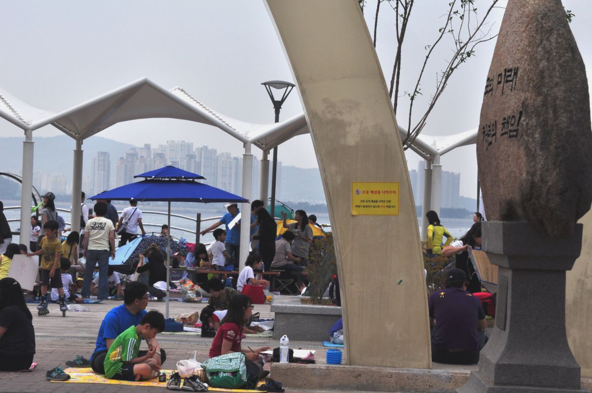가족과 바다를 그리는 모습