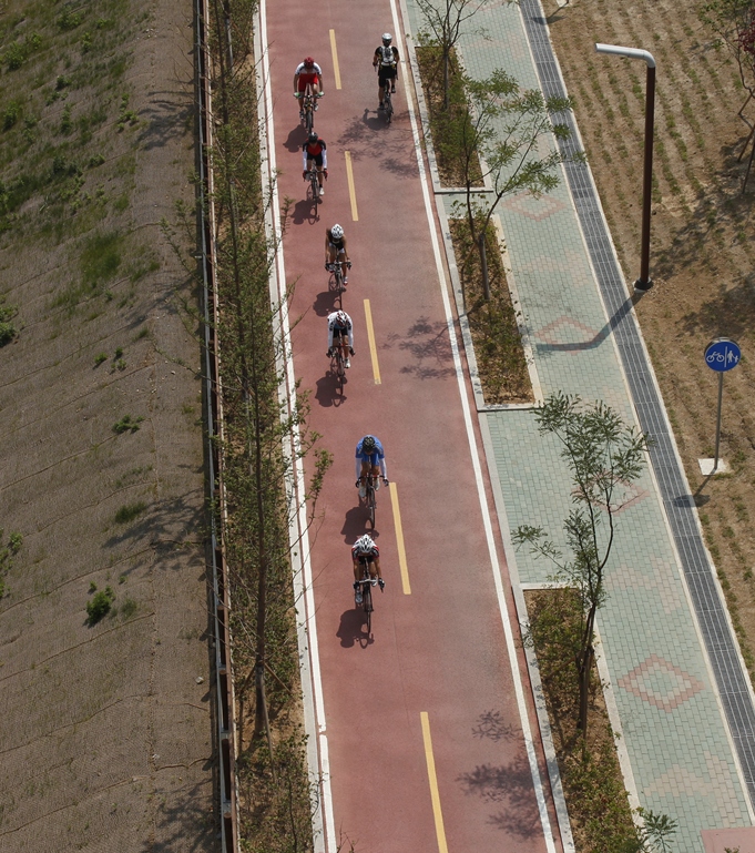 백석교위에서 본 아라뱃길 자전거길