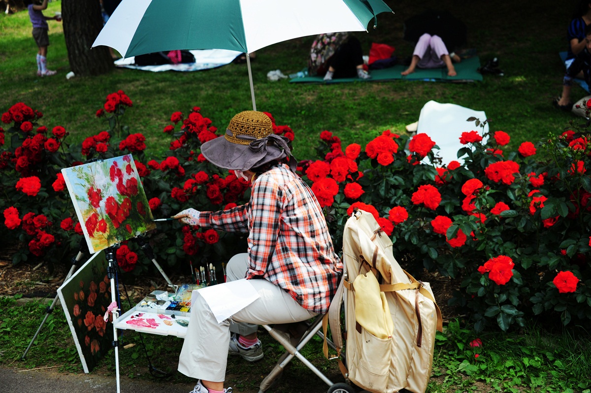 장미를 그리는 여인이 더 아름다웠습니다