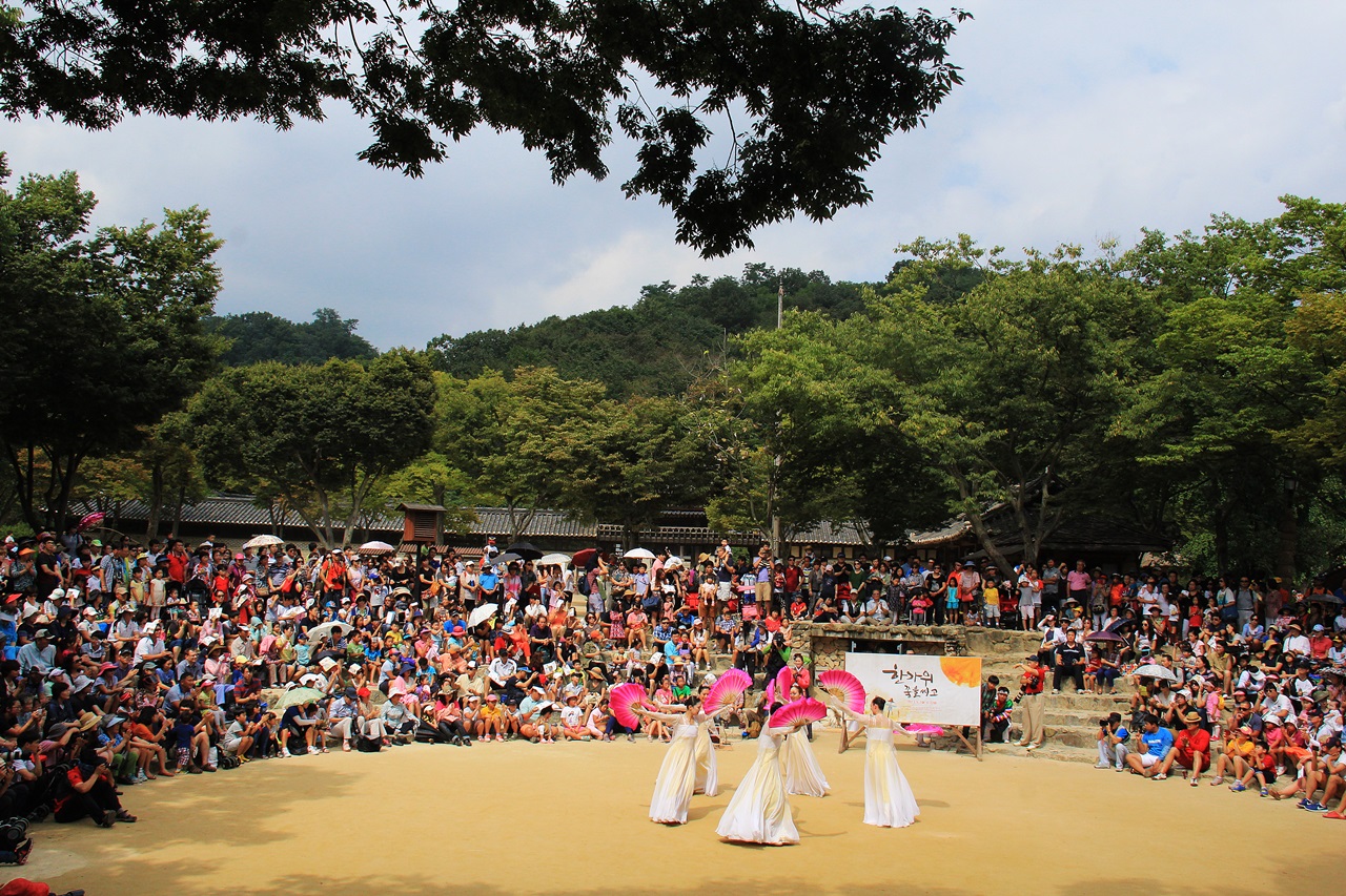 한가위를 기념하며 민속의 축제가 열리는 한국민속촌에서
