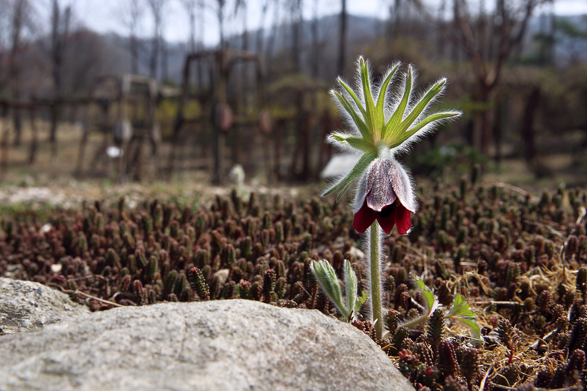 무덤가에 자생하고 동강 등 석회암지대에 자생을 하는 할미꽃이
