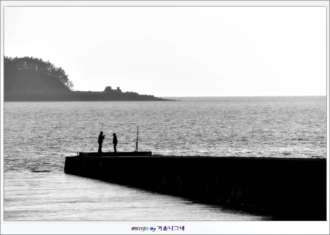 왜목마을 선착장에서 겨울아침 사진을 담고있는 연인들의 모습입니다
