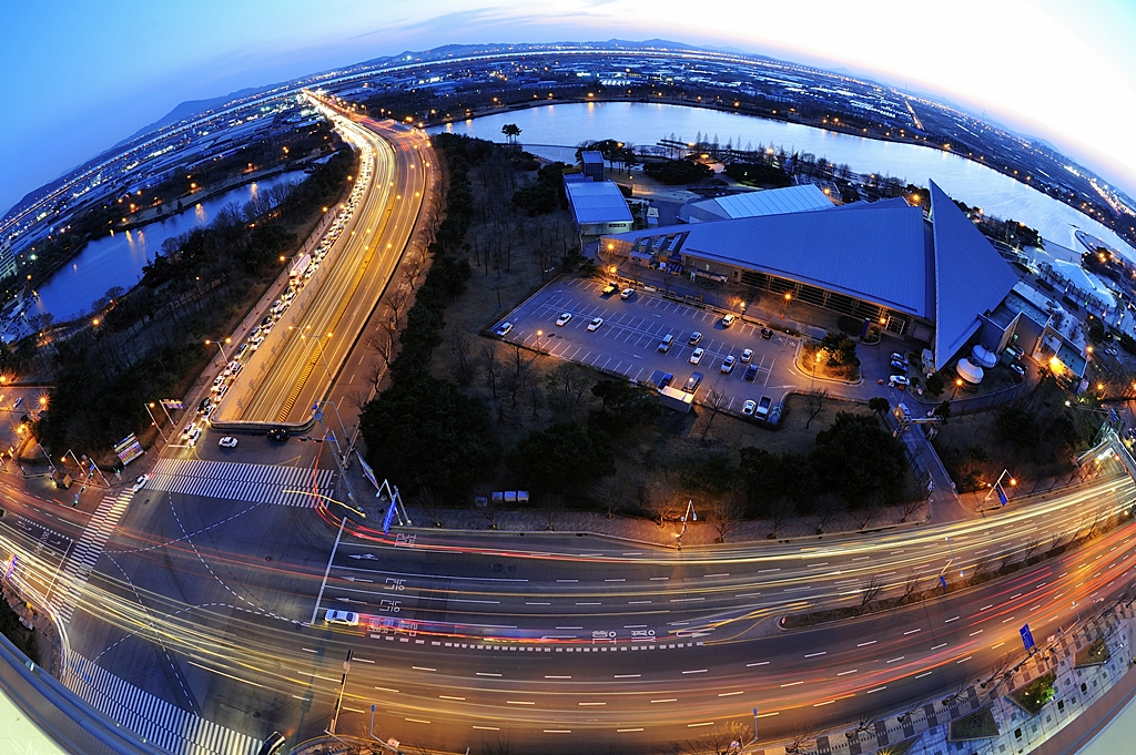 일산 진입로와 호수공원을 배경으로한 야경을