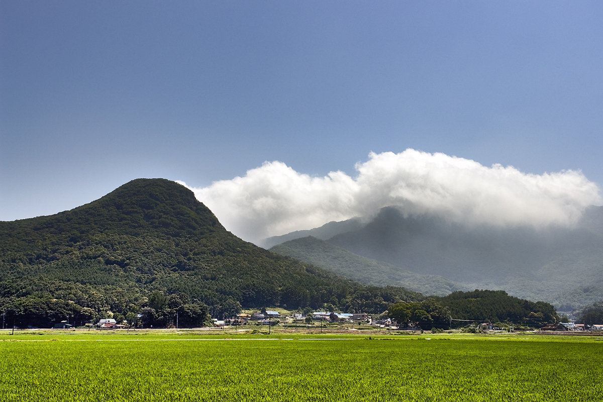 숙피산의 밤꽃 향기와 마니산의 운해아래 자리한 강화 덕포리 마을의 전경이 너무도 평화롭다.