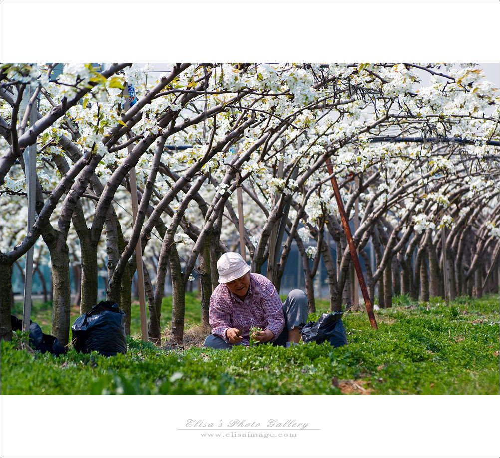 아름다운 배꽃에 홀려 들어간 배밭에서 꽃보다 아름다운 여인을 보는 행운을 누렸습니다.