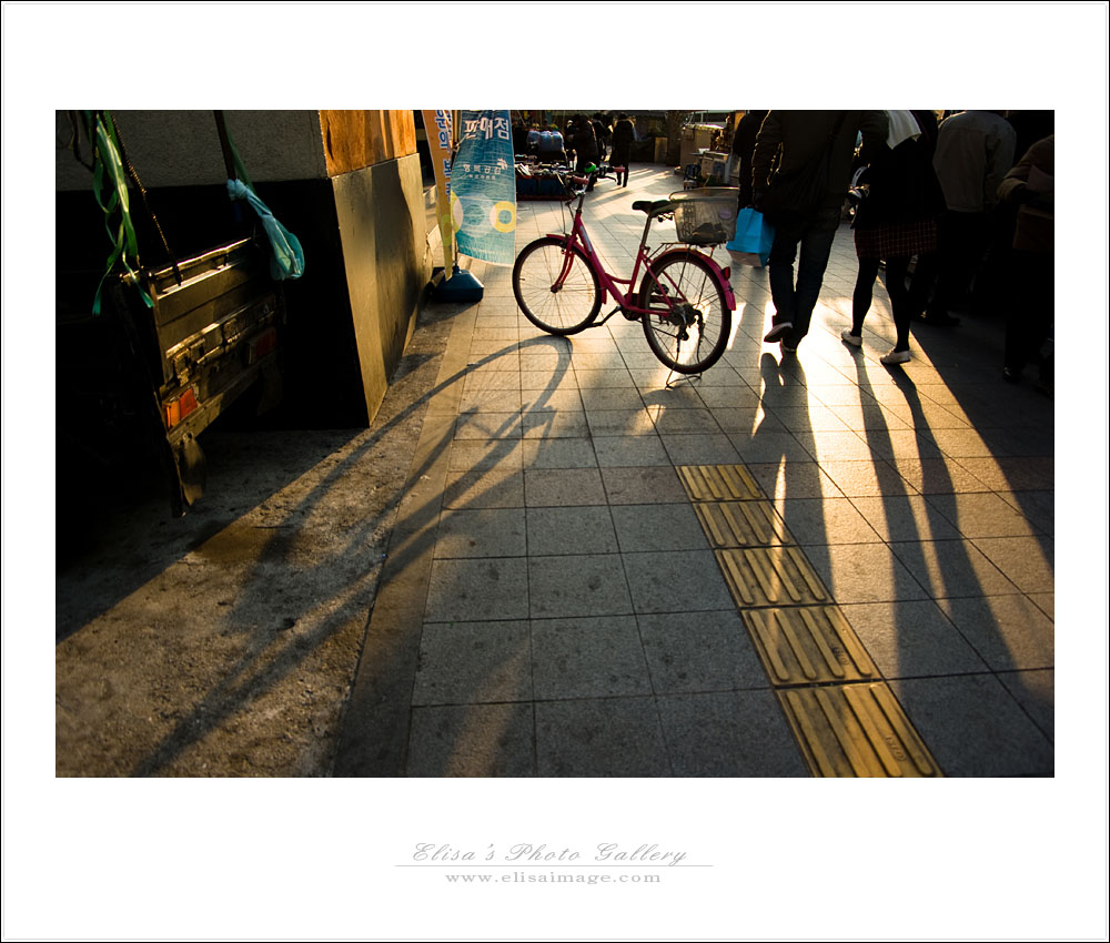 누군가 인도에 자전거를 잠시 주차해 놓았나 보다.