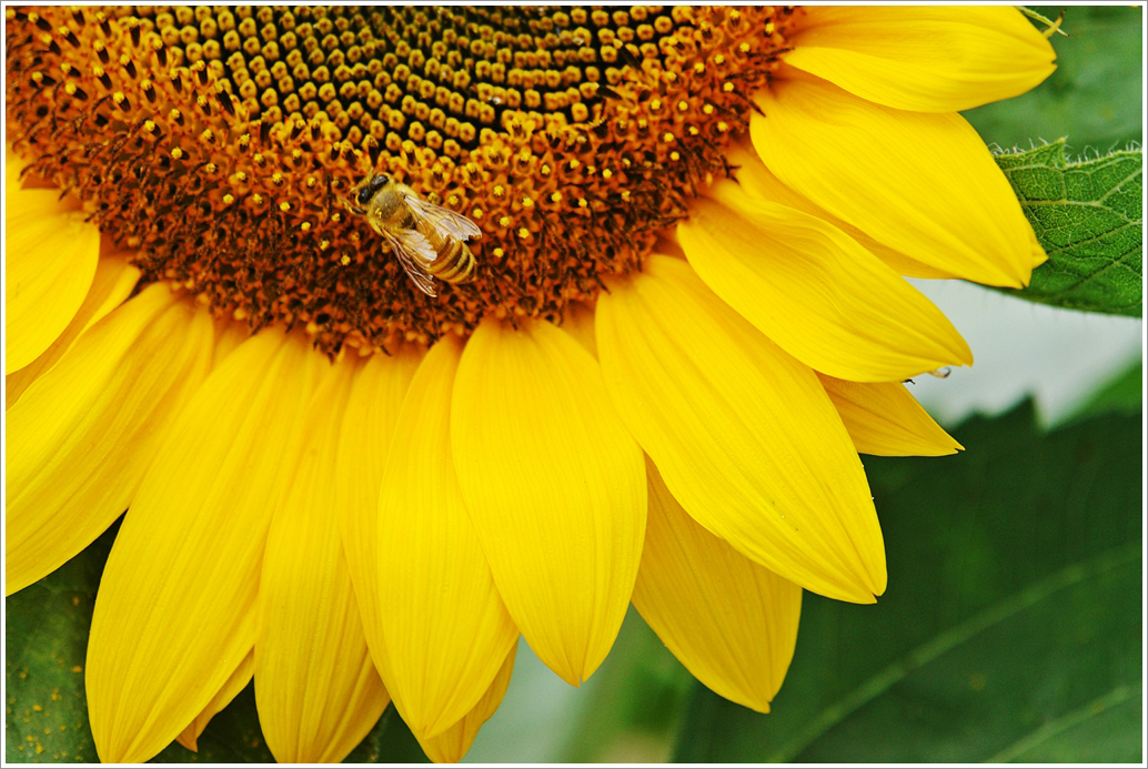 날개 상한 꿀벌의 쉼터...밝은미소로 안아주는 해바라기의 포용...