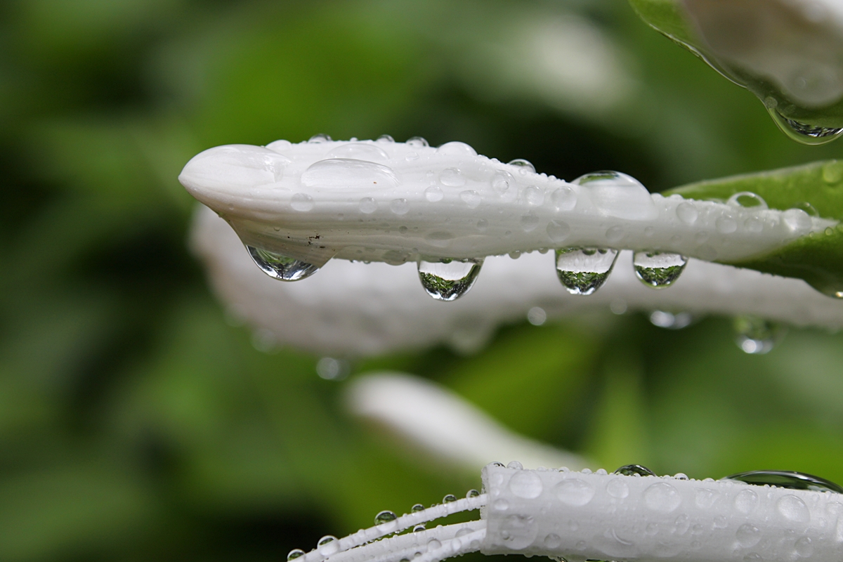 우중에 담은 옥잠화봉오리에 눈물이 방울방울