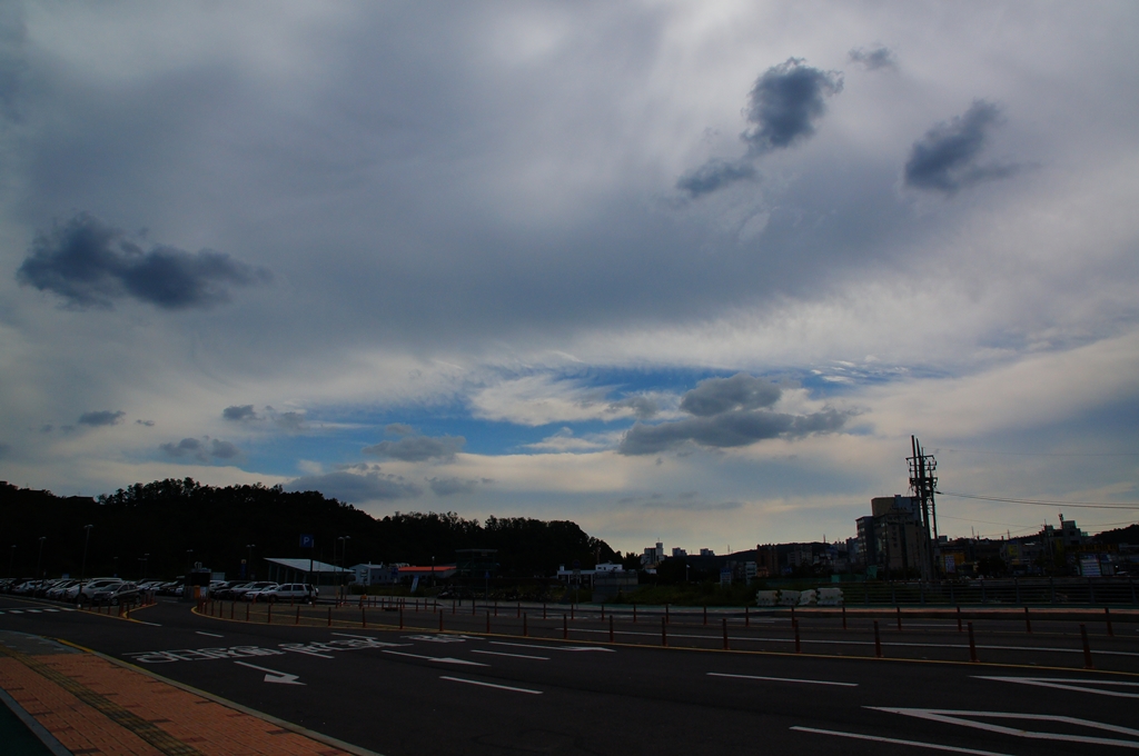 환승역에서 본 서쪽 하늘, 구름이 시선을 끌어들인다.