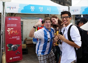 학암포 백사장에서 두 아들과 함께 여행을 온듯