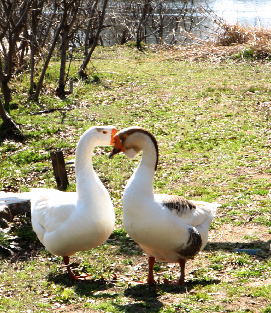 사랑하고파 하트를 그리는 거위부부.