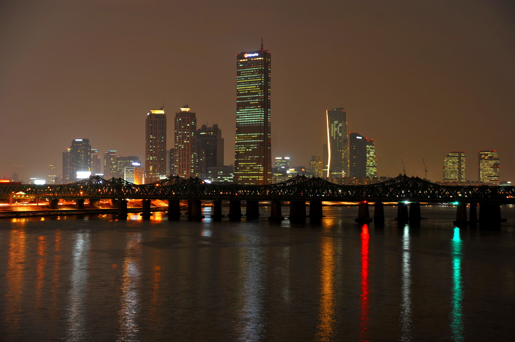 한강대교 다리에서있으니 통과차량의진동으로