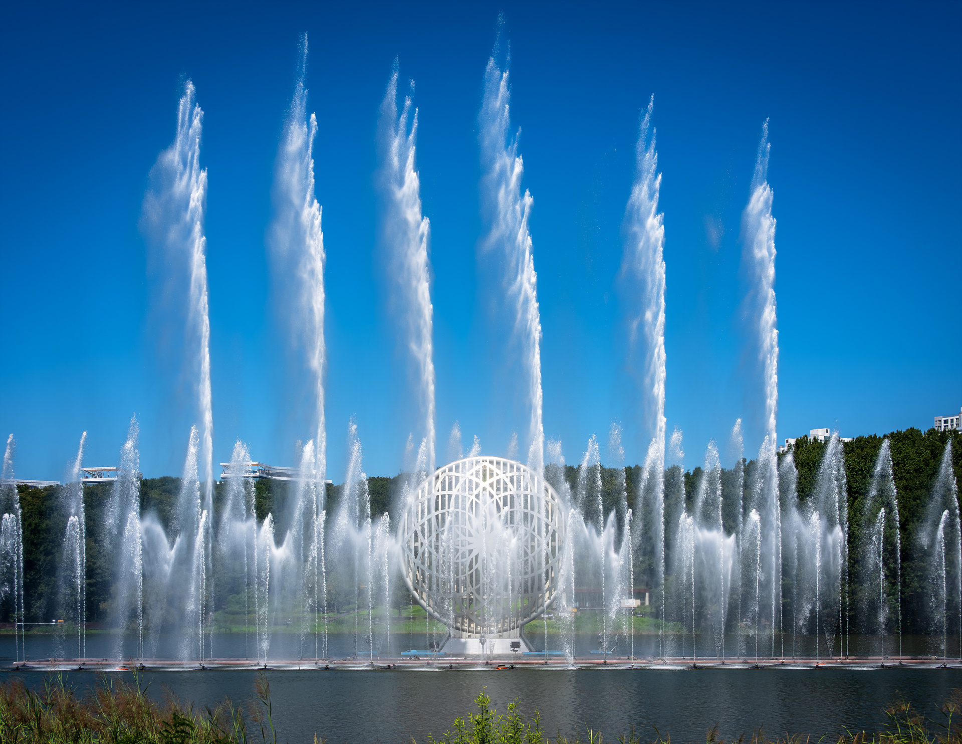 시원스런 가을 하늘과 멋진 분수쇼