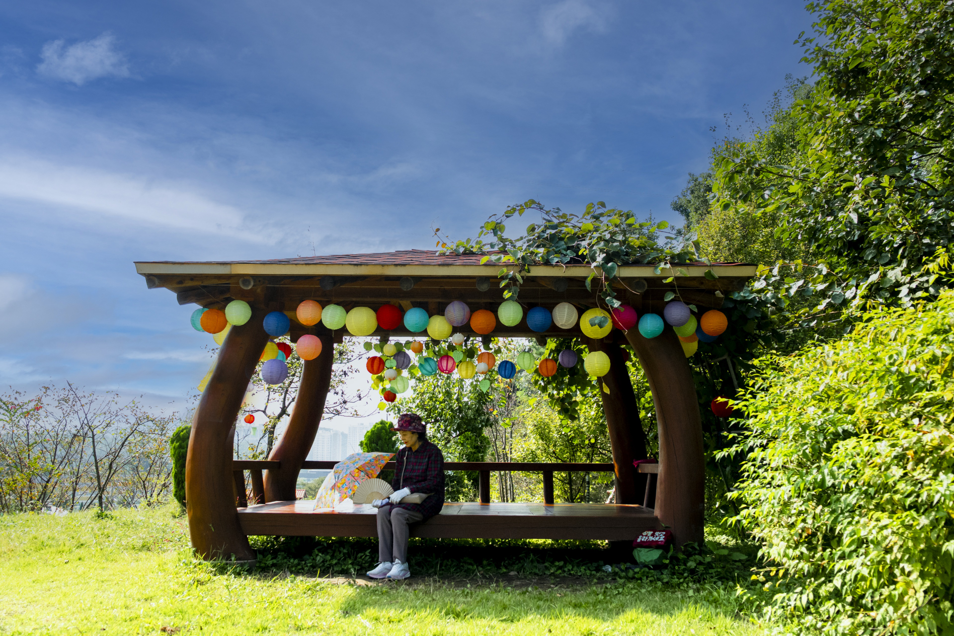 풍선으로 장식한 산사의 원두막